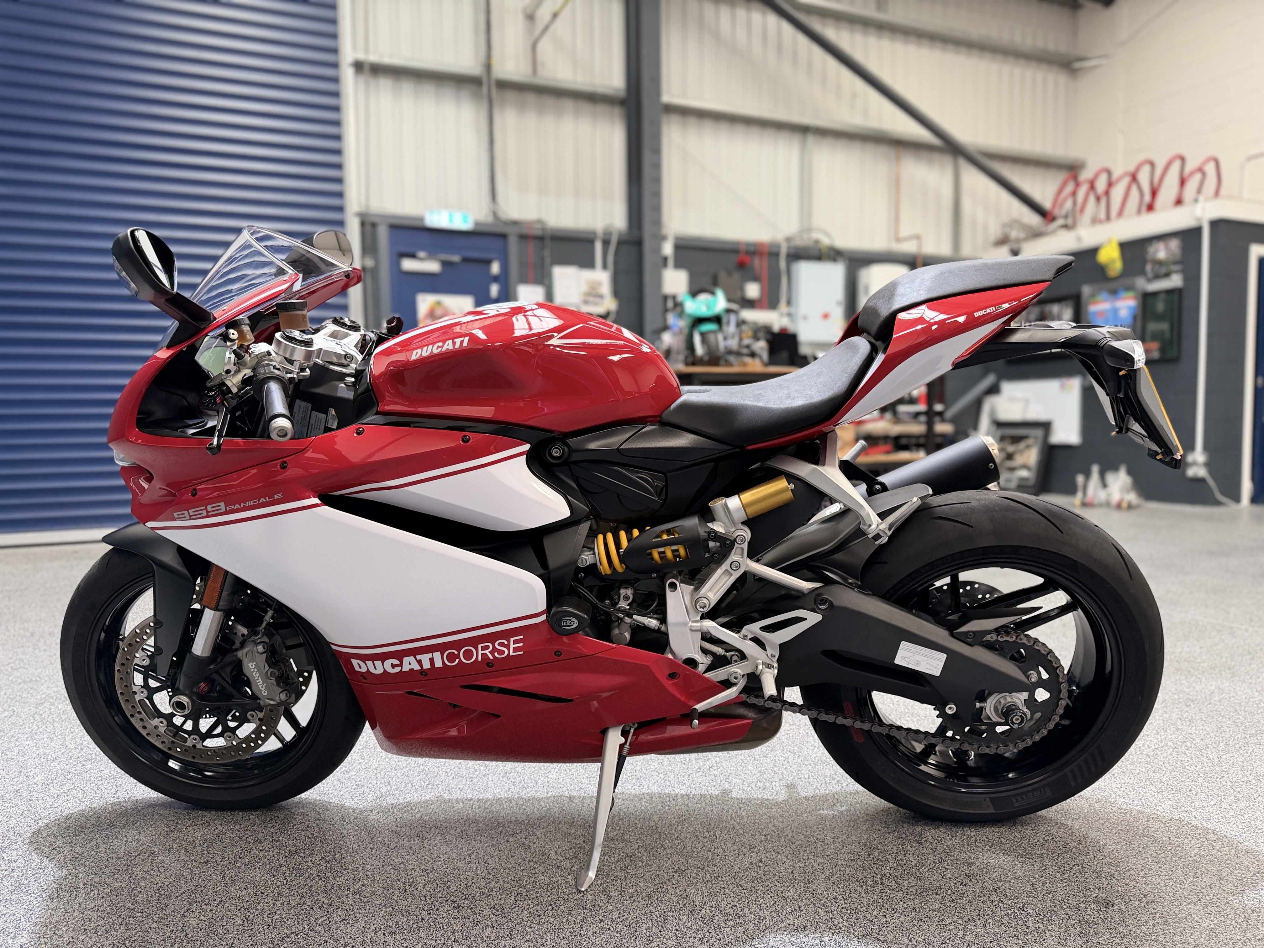 HSuperbikes are pleased to offer stunning 2016 959 Panigale which is exceptional Value. Sold to the previous keeper in may 2023 by Ducati Manchester. Original Bill of Sale, Book-Pack and History. Pazzo levers and R@G bobbins and Engine Protection